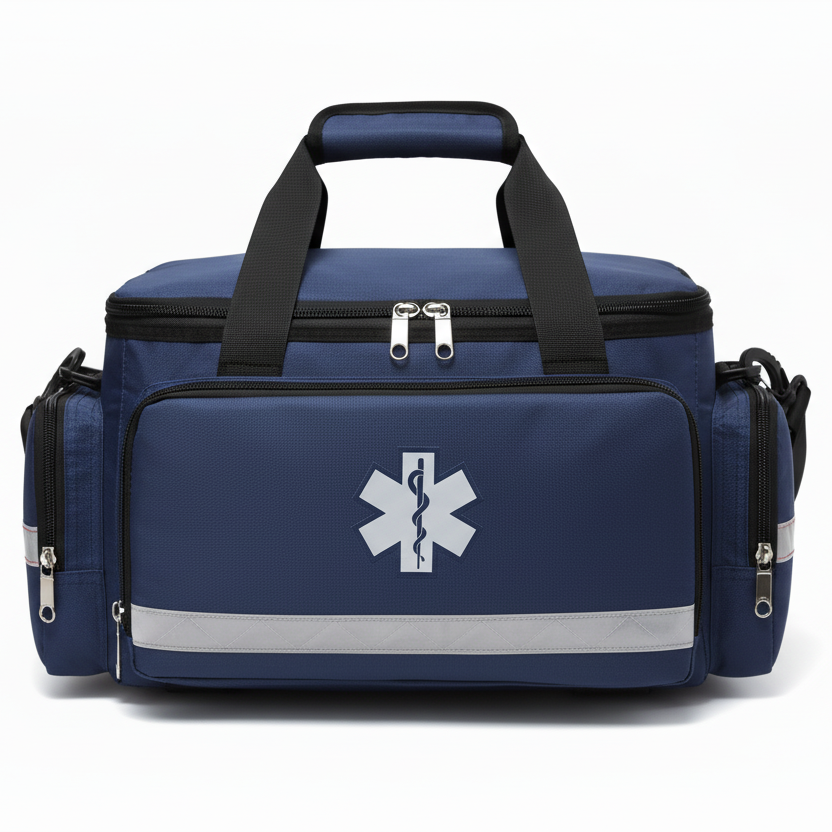 This Blue first aid bag is made from durable 1680D ballistic nylon with reinforced stitching.